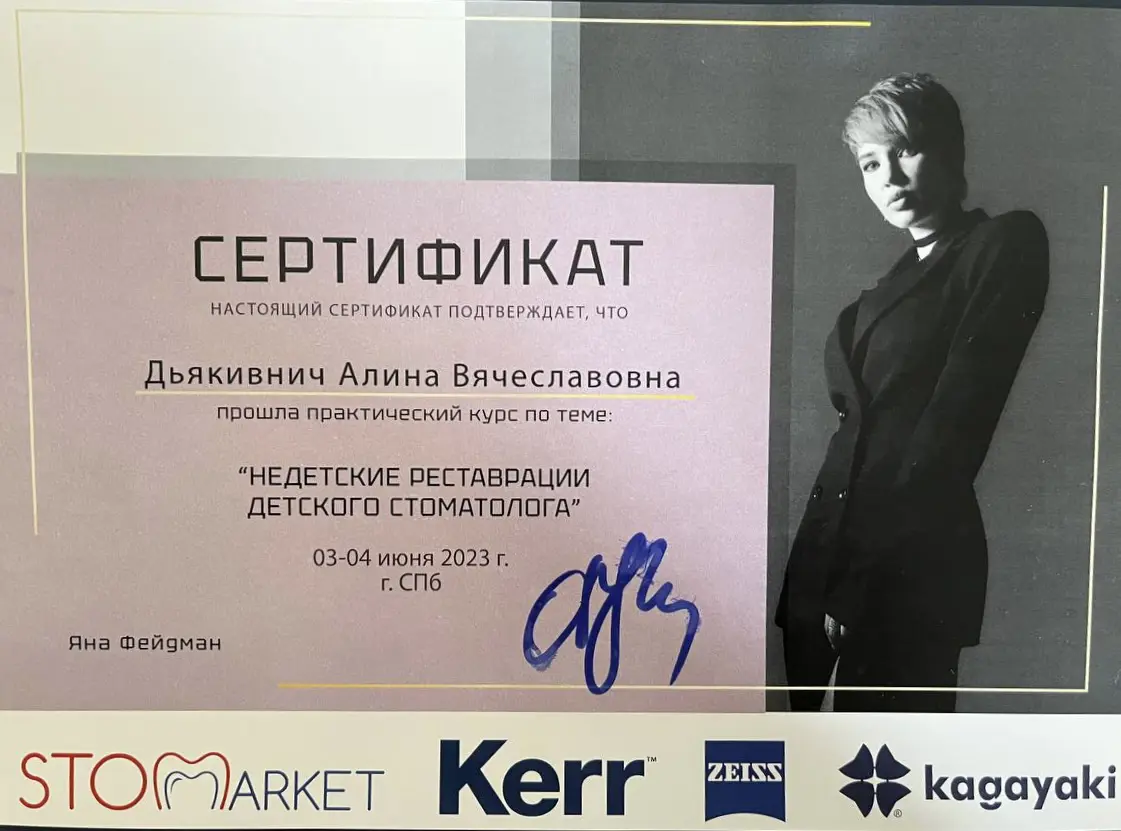 - 2025 г. — Белгородский государственный национальный исследовательский университет, ординатура, специальность «Стоматология ортопедическая»
