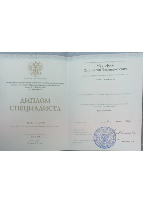 Мустафаев Эмирусеин Эсфендиярович