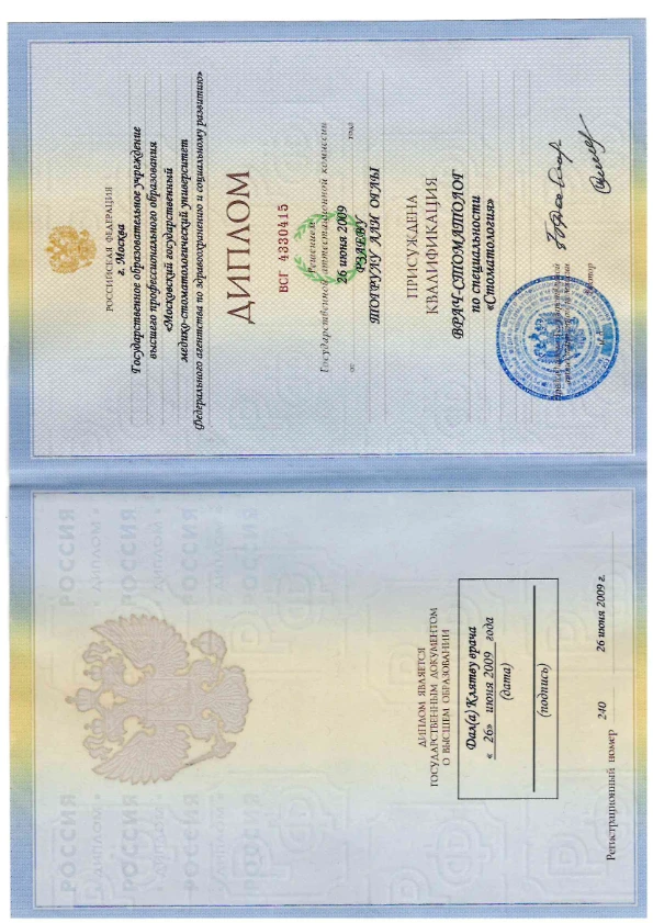 - 2009 г. — Московский государственный медико-стоматологический университет Евдокимова, «Стоматология»